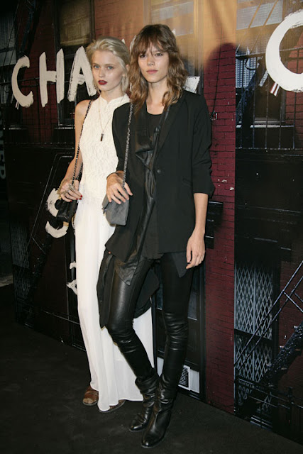 Freja looks always good in Rick Owens, to dress like her it's important no matter what you wanna wear, keep them into three materials, you can see she uses cutton, polyester( god I hate it) and leather, because she is skinny, that's why she needs hard cutton and leather to shape her up, to make the whole body look stronger than she really is... the draping vest made of polyester adds a bit of volume to balance between cutton and leather. it's fiece.
